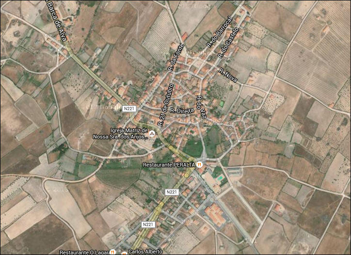 Exemplos: imagem da igreja matriz e a aldeia por por satélite: